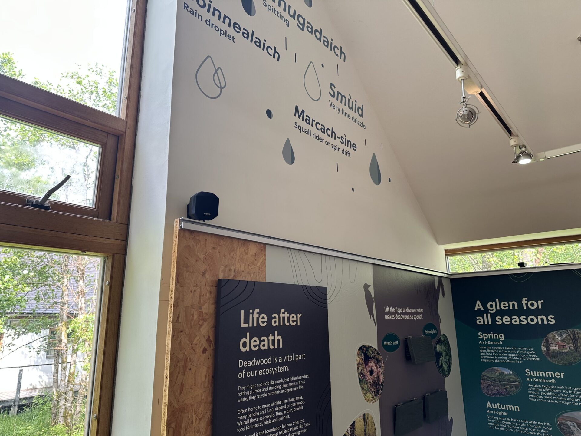 We created two bespoke software experiences for the Glencoe Visitor Centre. The first was an ambient audioscape system that layered environmental sounds throughout the space, creating a rich and immersive atmosphere. The second was a Unity-based touchscreen quiz that encouraged visitor interaction and learning through play. Together, these installations offered both sensory and educational engagement for visitors of all ages.